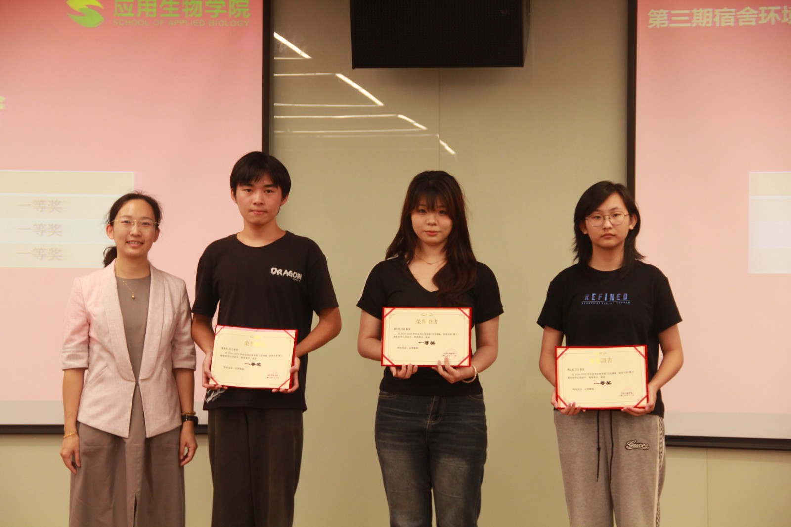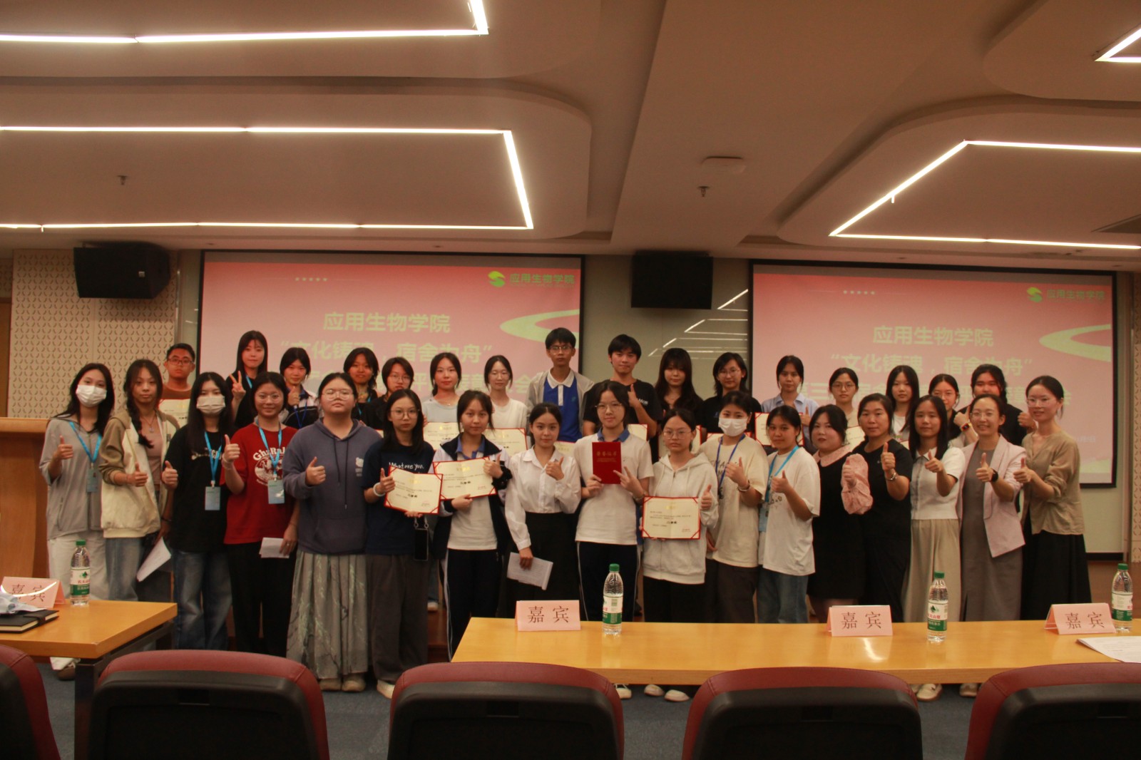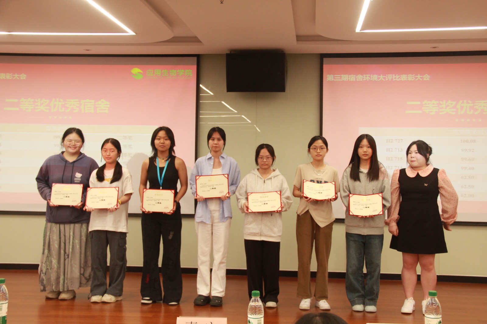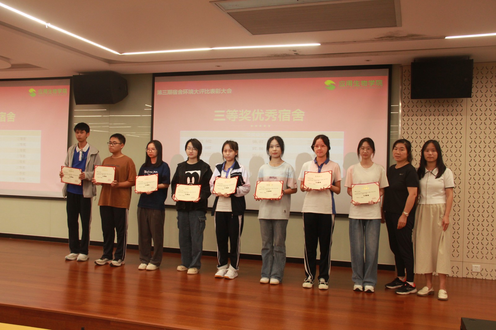 在应用生物学院全体学生的积极参与下,由学院精心策划的“文化铸魂,宿舍为舟”宿舍评比活动于9月18日正式启动,并于10月末顺利完成各项评审工作。经过一个多月的激烈角逐与严格评审,11月5日下午,表彰大会在图书馆二楼学术报告厅隆重举行,对在活动中表现突出的宿舍进行表彰。