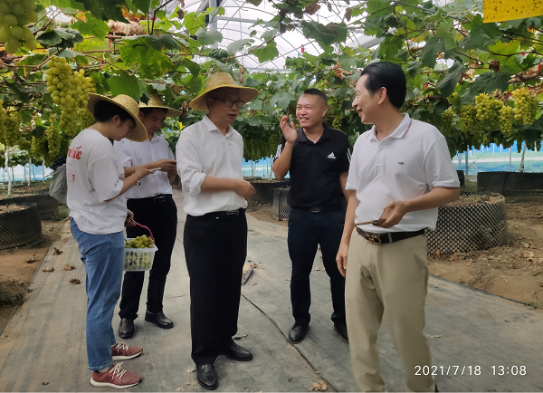 暑假伊始,2021年7月18日,景观与生态学院傅卫民院长带领综合办公室刘志虎主任、园林技术教研室许建新主任、沈更加老师等来到位于龙岗区坪地街道的神农果业阳光玫瑰葡萄园基地进行考察学习。葡萄园基地股东、深圳市绿奥环境建设有限公司董事长辜少成先生,以及中国建材工业出版社园林古建编辑部策划编辑时苏虹女士陪同参观考察。傅卫民院长与绿奥公司、神农果业三方就建设园林教学实习基地达成了初步意向。