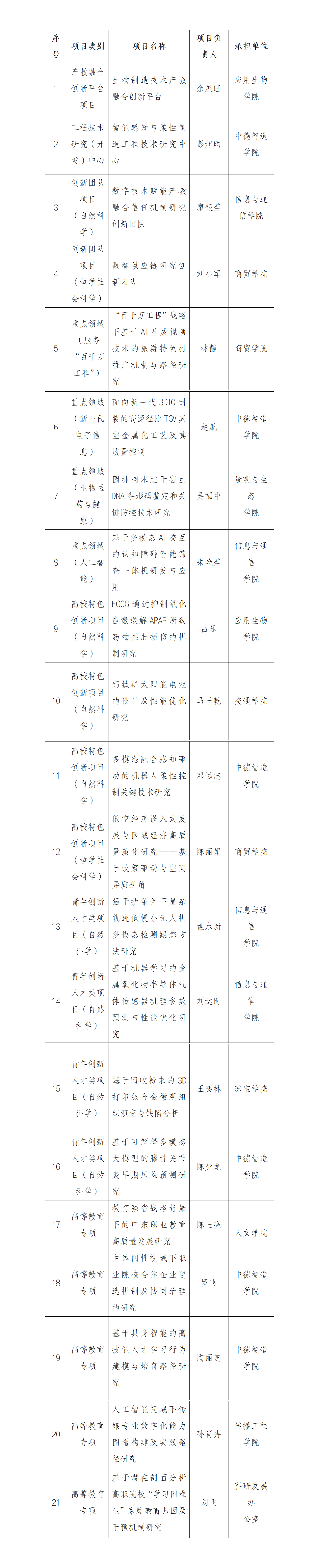 喜报!我校获批21项!2025年度省级科研平台、项目立项创佳绩近日,广东省教育厅正式公布了2025年度科研平台、项目及教育科学规划课题(高等教育专项)立项名单。在学校领导的高度重视和统筹部署下,科研办精心组织,各二级学院全力落实,经教师申报、学校推...