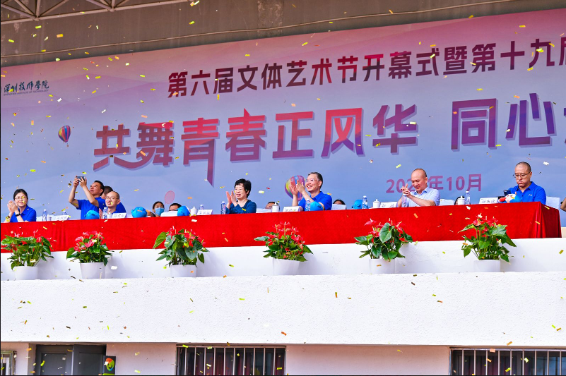 10月26日上午,深圳技师学院第六届文体艺术节暨第十九届田径运动会惊艳开幕!市人力资源保障局党组成员、副局长吴军军出席开幕式并宣布开幕,深圳技师学院在家校领导、各部门负责人及师生代表近2000人在现场参加开幕式有关活动。校党委副书记、校长邓元龙主持开幕式,校党委书记罗德超致开幕词。为期一个多月的文体艺术节包含体育竞技、文化艺术、社团文化、高雅艺术进校园等丰富多彩、亮点纷呈的活动内容。